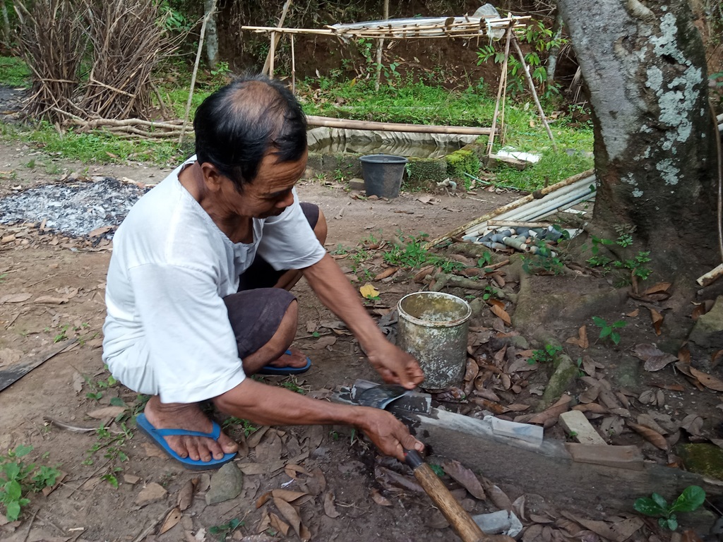 Pak Suwaji ngasah arit Desa Bigaran Borobudur