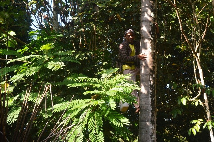 Proses memanjat Pohon kelapa dibantu tataran #2 – obyek nderes – potensi ekonomi – Desa Bumiharjo