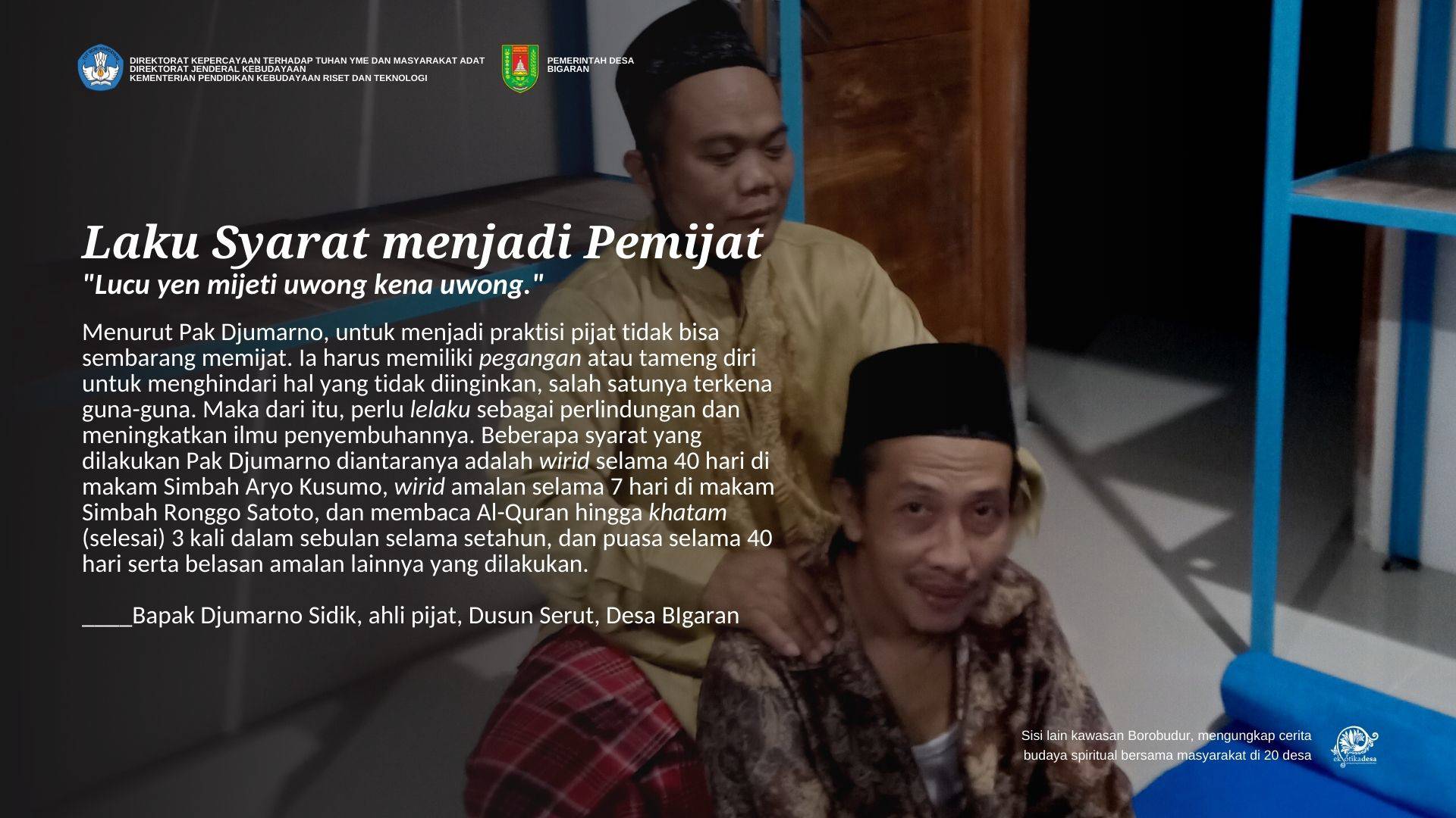 Budaya Spiritual Wong Pinter – Juru Pijat Mbah Mus – Desa Bigiran Borobudur #4