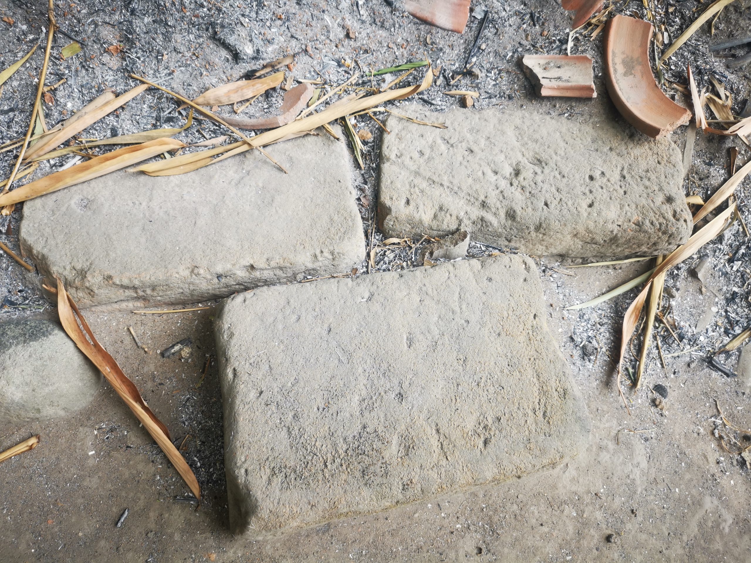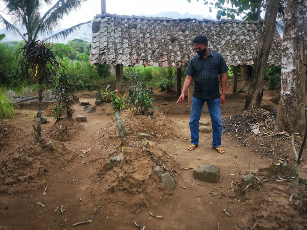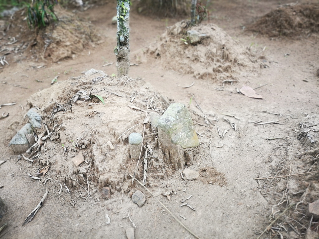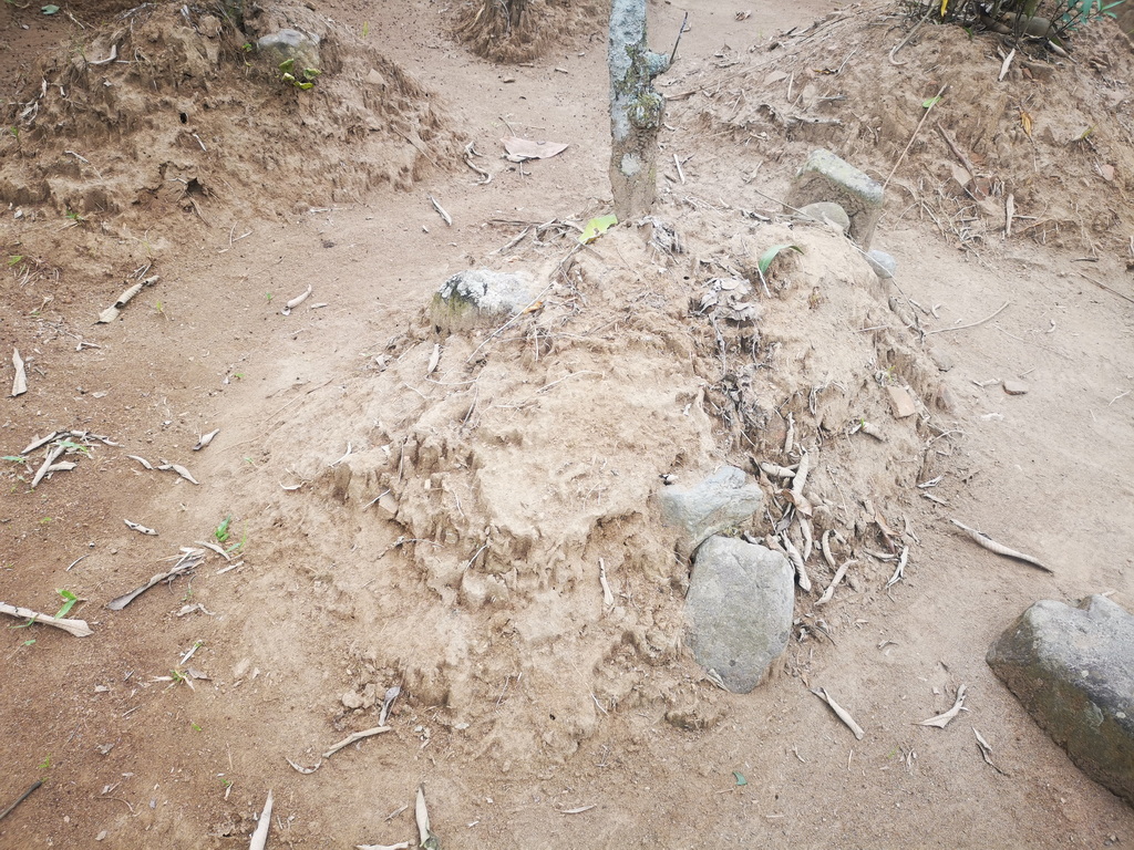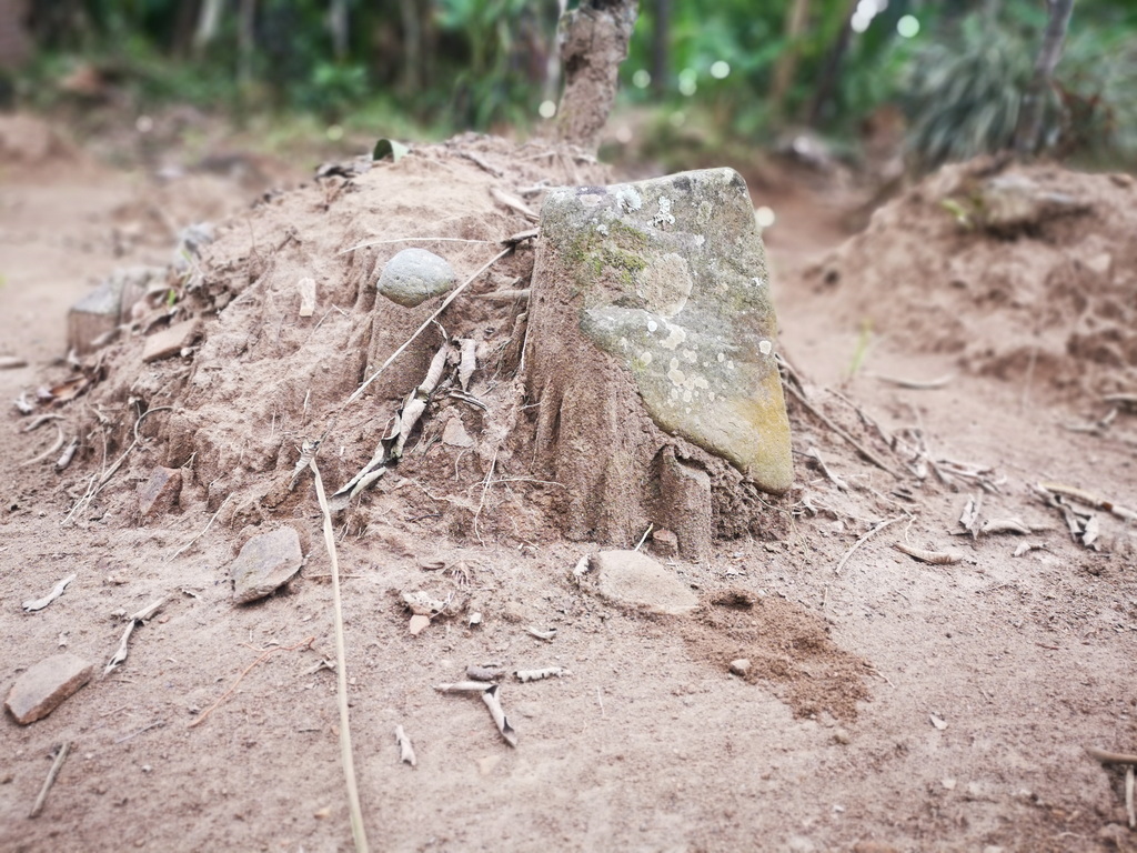 Tempat sakral dan sejarah lisan – Mbah dalang – desa Karanganyar 2Bata merah pada makam, sisa sisa setelah longsor