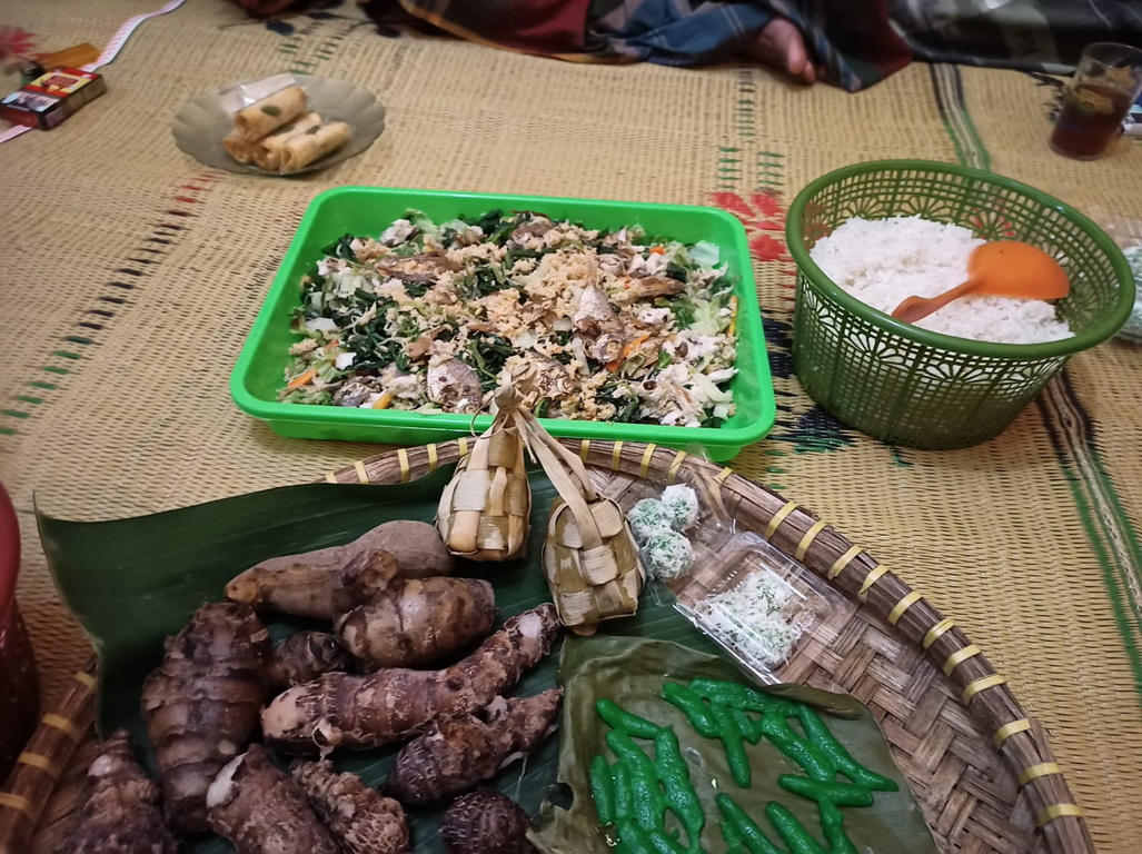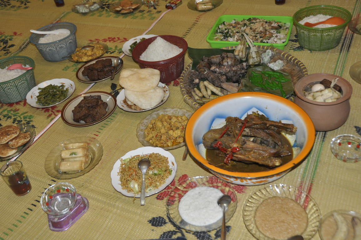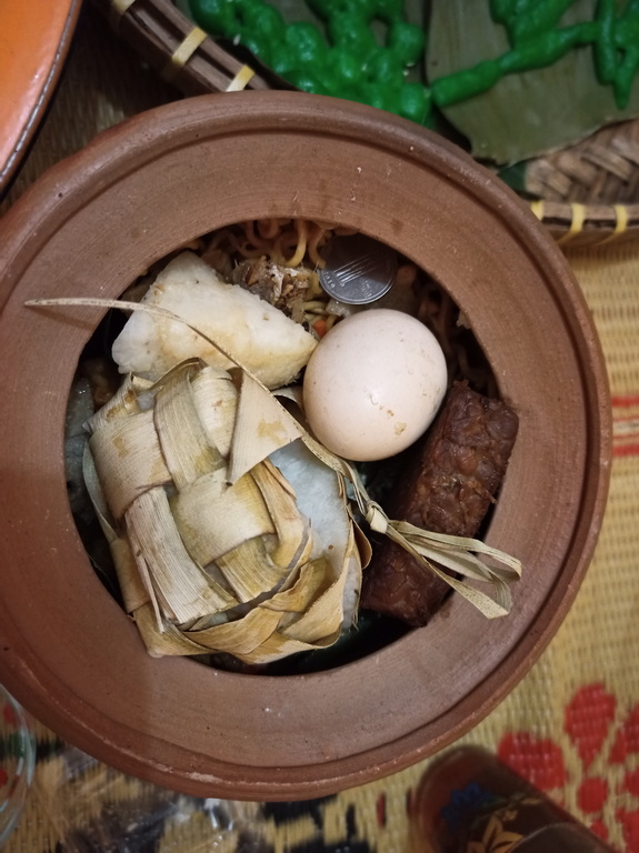 Kadang kala, masyarakat menggunakan sego tumpeng yang menjadi pelambang gunung, dan sayuran atau larakan di bawahnya yang menandakan reja  atau mulianya sebuah kampung. Pak Kaum atau Kiai di desa bertugas untuk memimpin pembacaan doa dan juga melempar kendhil.