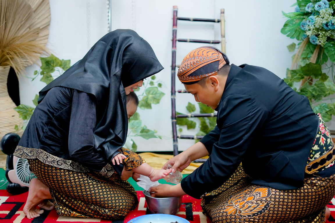 Jika bayi yang diberkati laki-laki, maka si bayi dipanjatkan ke tangga dari tebu. Masyarakat percaya bahwa hal tersebut bermakna agar si anak saat dewasa lebih tanggung jawab dan lancar rezekinya. “Rejekine lancar, bisa naik-naik-naik, seperti tangga,” jelas perempuan itu.