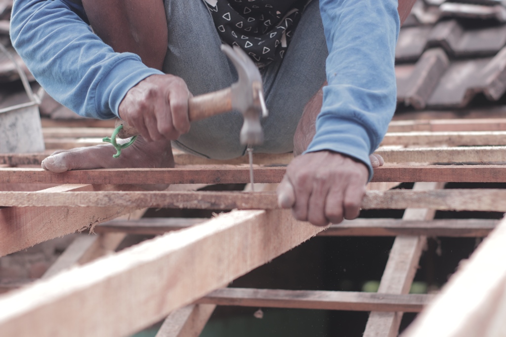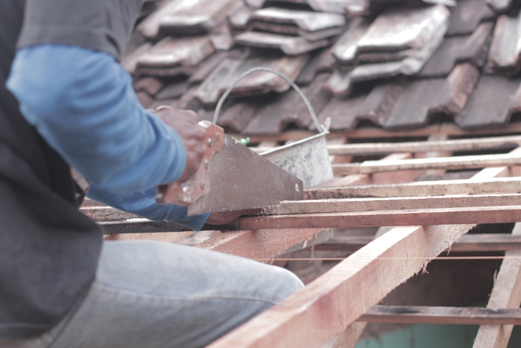 Nggorok. Nggorok atau menggergaji adalah proses memotong kayu atau bambu untuk disesuaikan dengan kebutuhan tertentu seperti membuat reng atap rumah. Sebelum digorok, dihitung dulu berapa ukuran yang diperlukan, kemudian digorok sesuai dengan ukurannya. Perlu kehati-hatian dalam nggorok ini, karena gorok atau gergaji bersifat tajam. Jika tidak fokus, bisa jadi mengenai anggota badan dan menyebabkan luka. Saat sedang menggorok, rekan yang lain memilih dan mengukur kayu atau bambu untuk dipersiapkan untuk digorok. Rekan yang lainnya lagi memindahkan ke tempat yang lain batang kayu atau bambu yang sudah digorok.